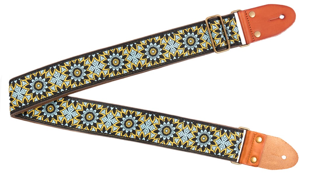 Delux gitarreim med klassisk vevd mønster. Mikrofiber semsket skinn på baksiden. Italiensk brune skinnender