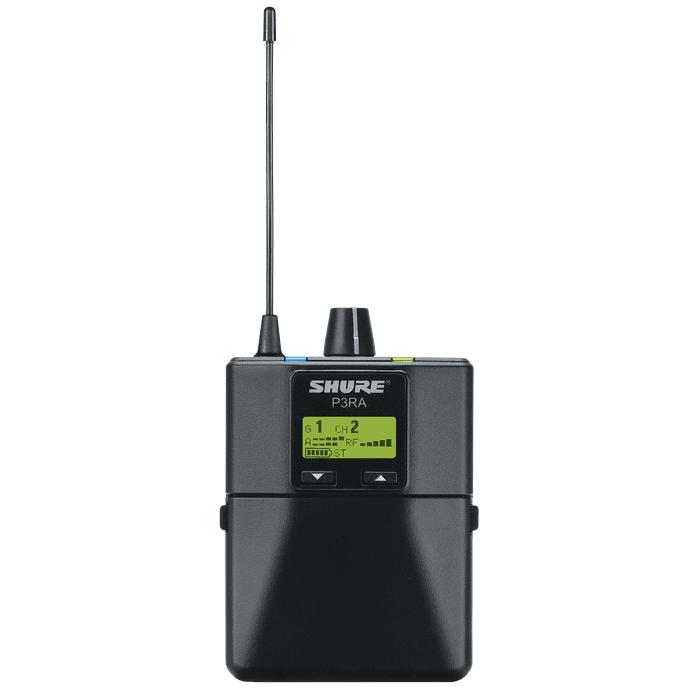 P3RA er en trådløs stereo bodypack-mottaker for bruk med PSM 300 Personal Monitor System.