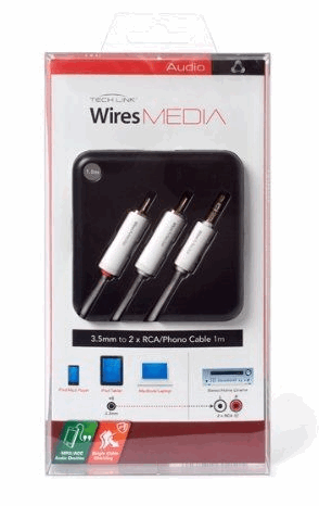 Tech Link 3.5 jack to RCA/Phono cable, 1m