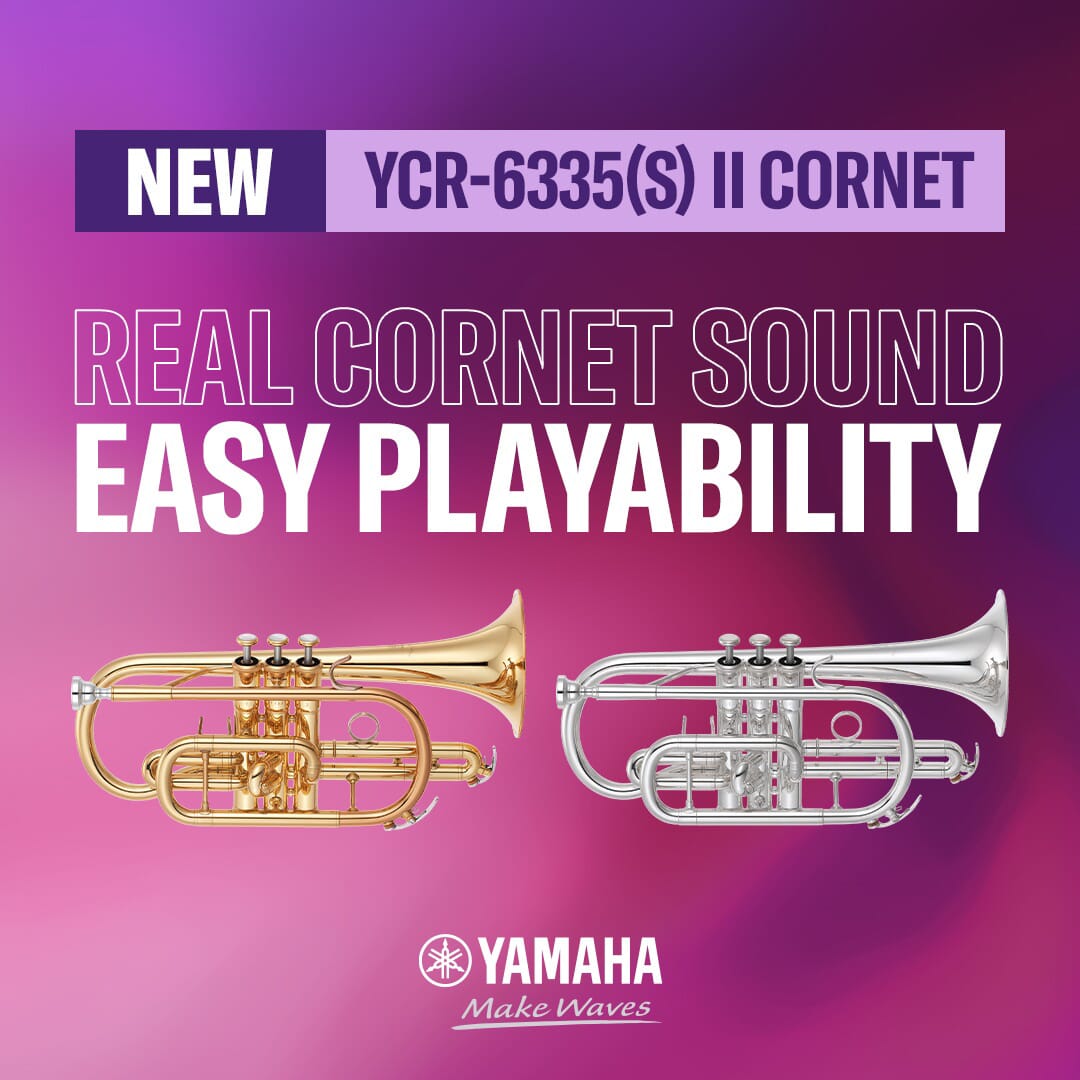 The new professional series Cornet YCR-6335(S)II comes with a complete new design concept. Equipped with a new style valve casing and a maintuningslide brace in combination with redesigned braces the instrument offers a very easy response and great playability with a large cornet sound.